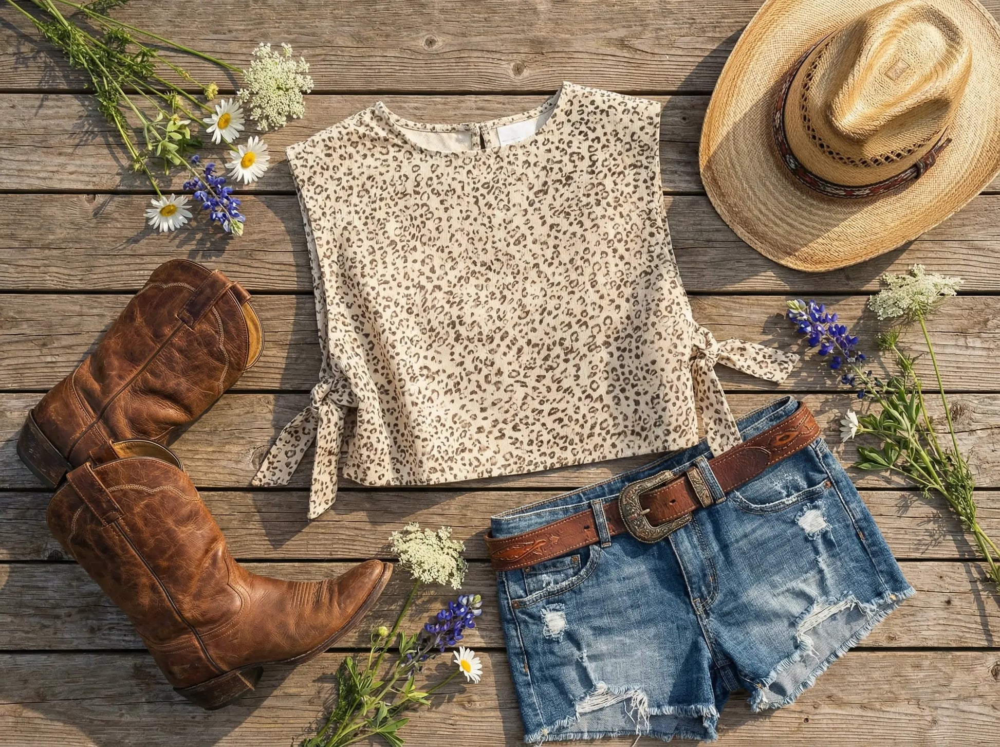 Embrace your wild side this spring and summer with our Apricot Side Tie Knot Leopard Print Vest. This playful piece delivers those coveted leopard print vibes in a trendy, versatile silhouette. Layer it over your favorite cami for a polished look, or go bold and wear it solo—the choice is yours. The side tie knot detail adds an effortless, chic touch that pairs perfectly with jeans or any Spring-weather outfit. Whether you're keeping it classic or feeling adventurous, this vest is your ticket to standout seasonal style.