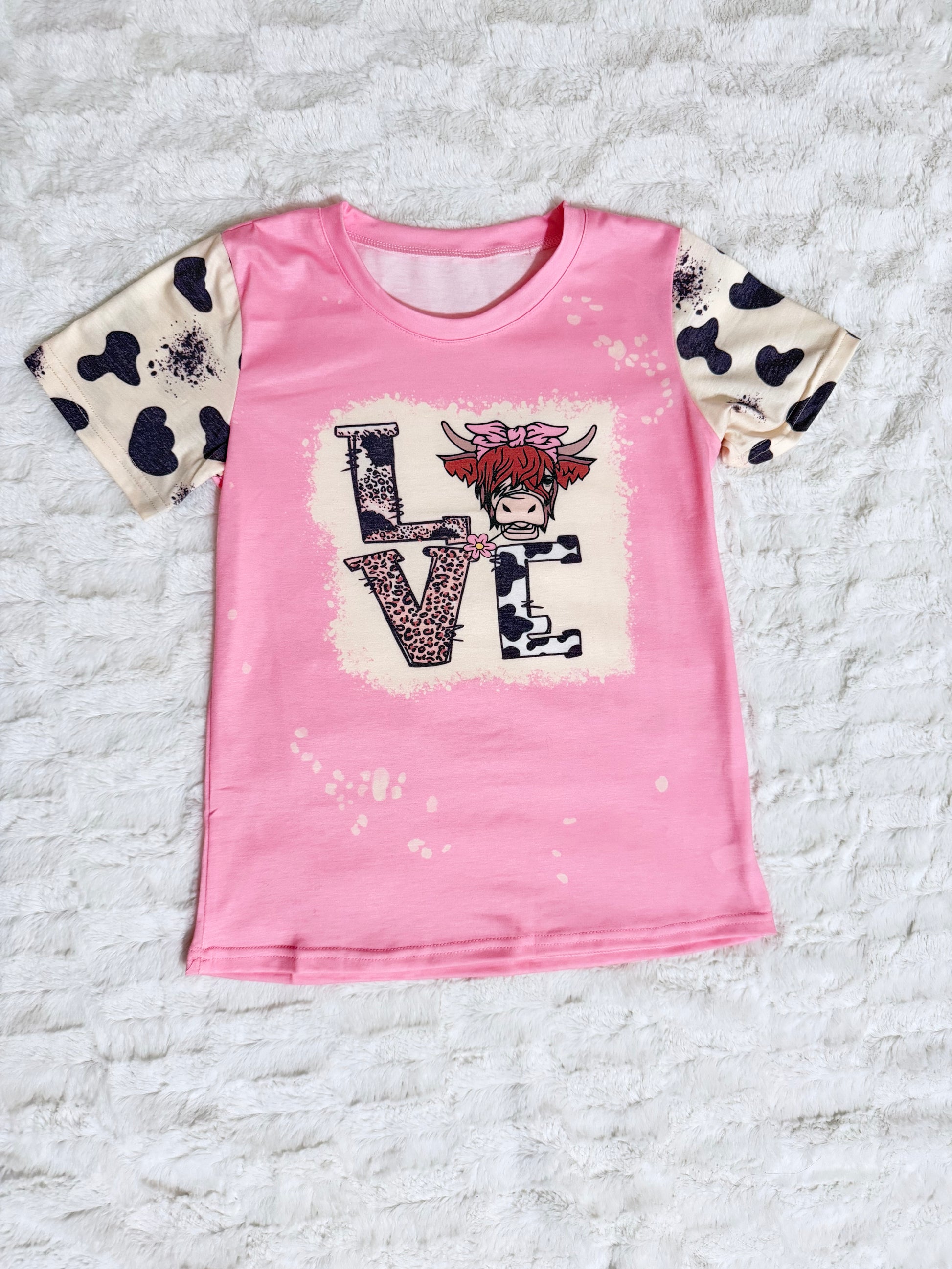 Baby/Girl's Pink LOVE Hyland Cow with Cow and Leopard Print T-shirt